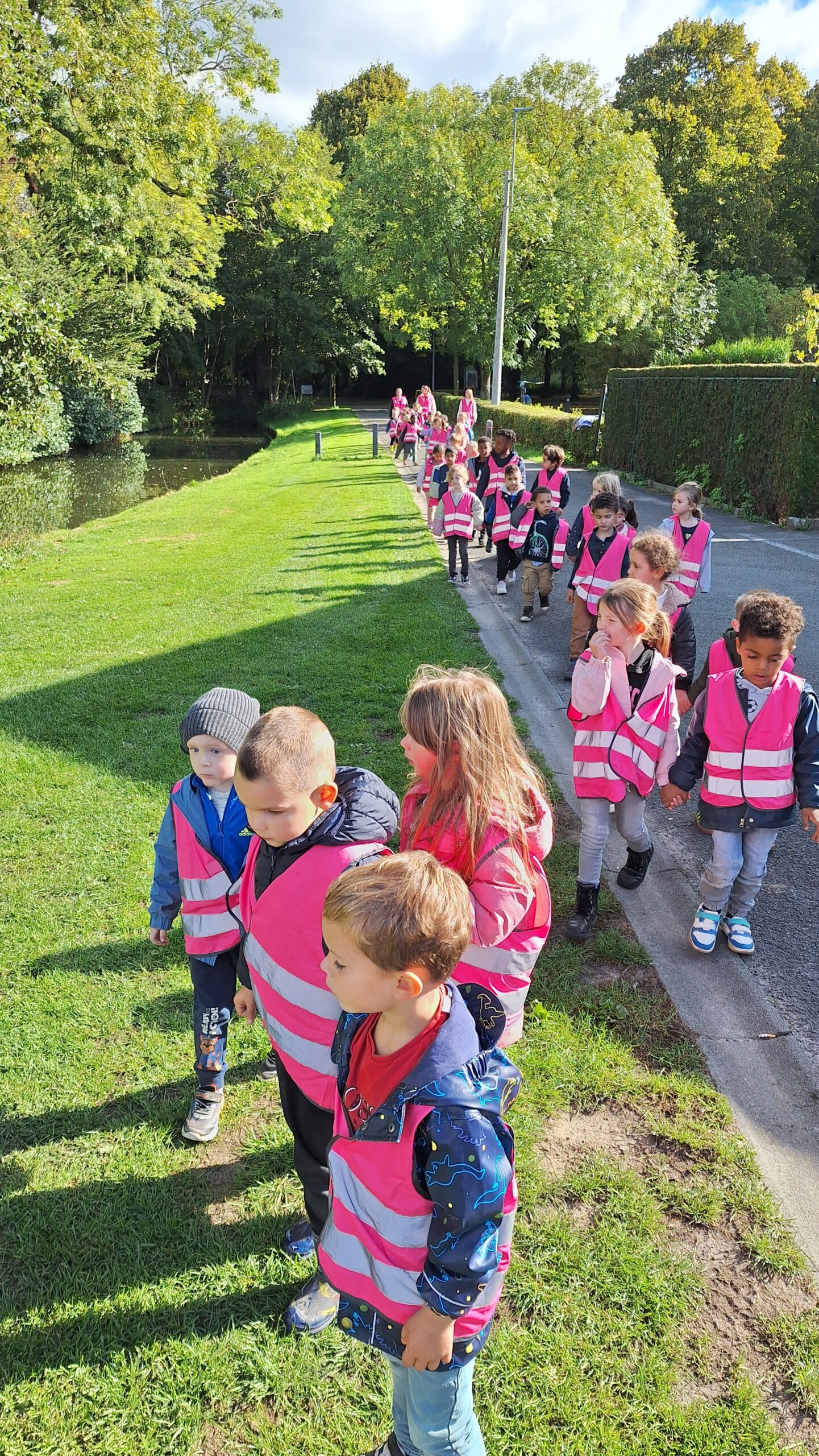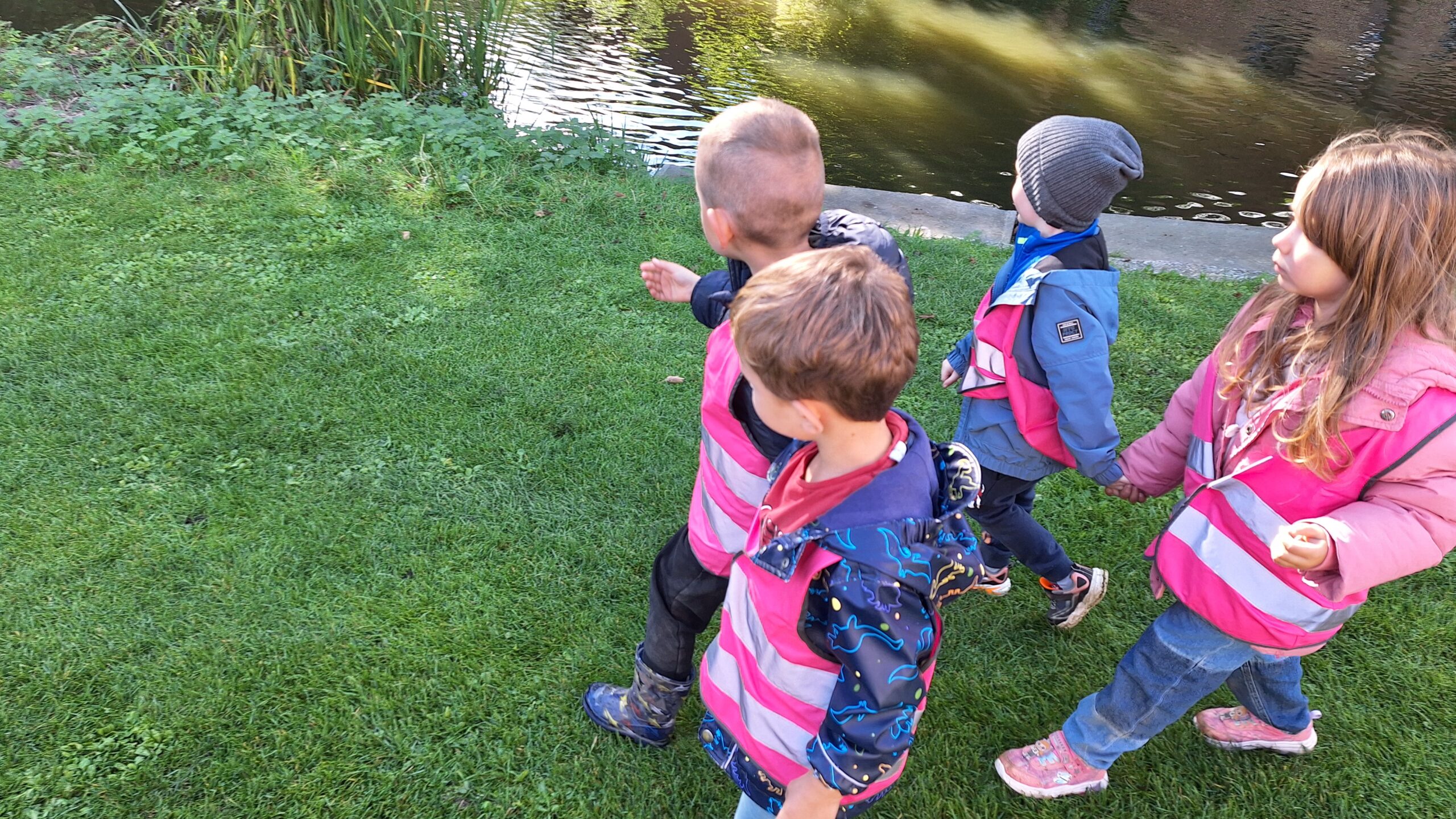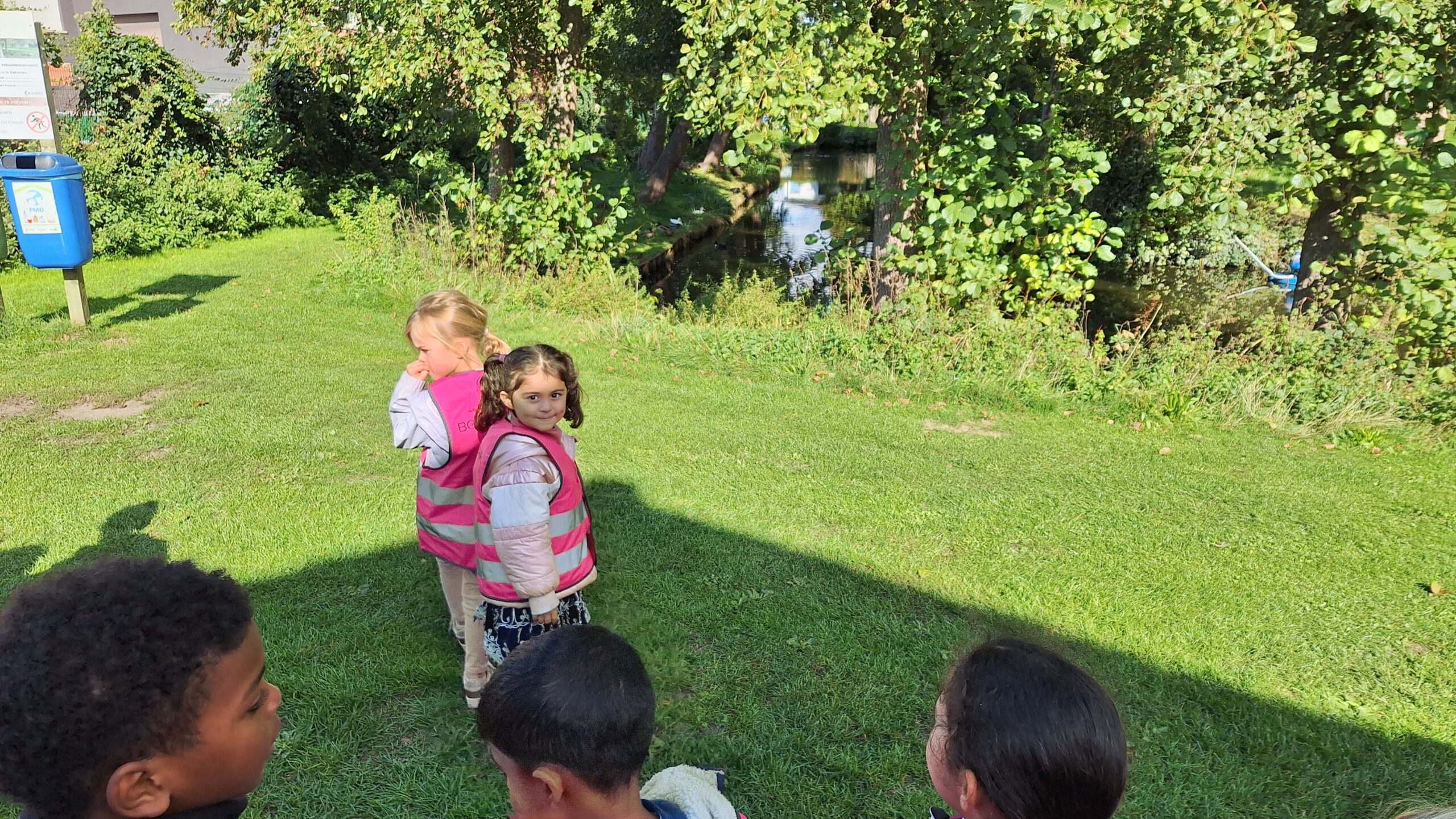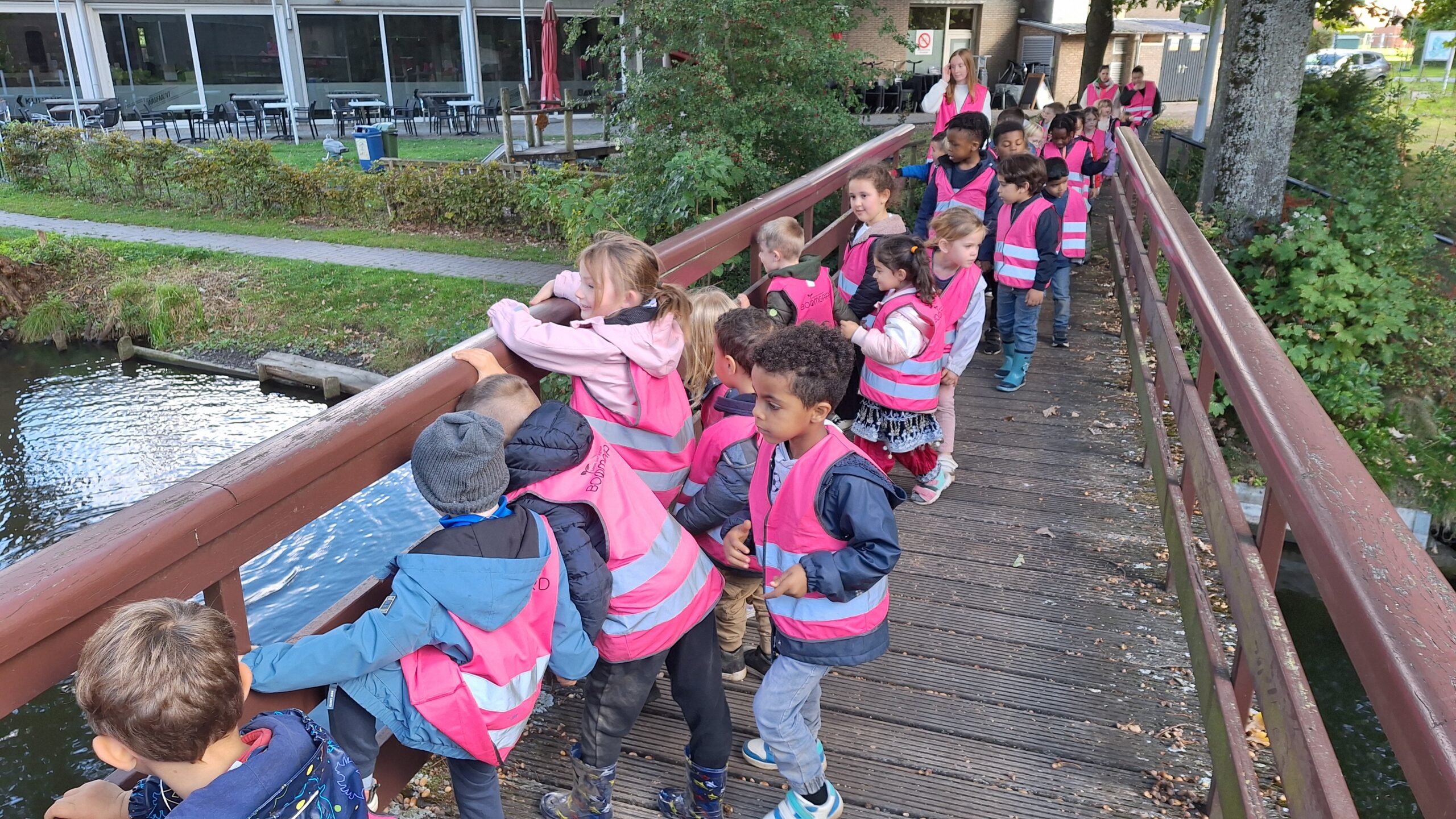 Waar de kleuters het meest naar uitkeken was onze uitstap op dinsdag naar een echte vijver. De kinderen keken vol verwondering naar wat er allemaal te zien was: eenden, planten, water en een gans. Zo werd het thema nog echter en konden ze zelf ervaren hoe een vijver er in het echt uitziet.