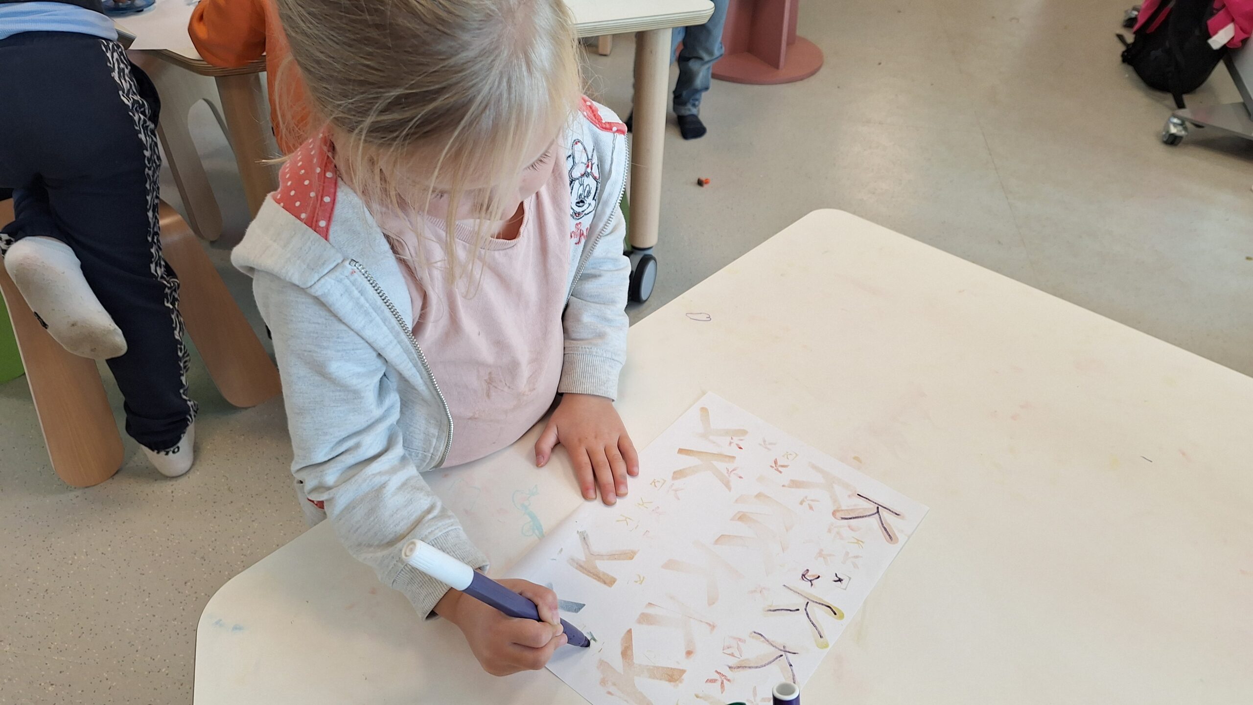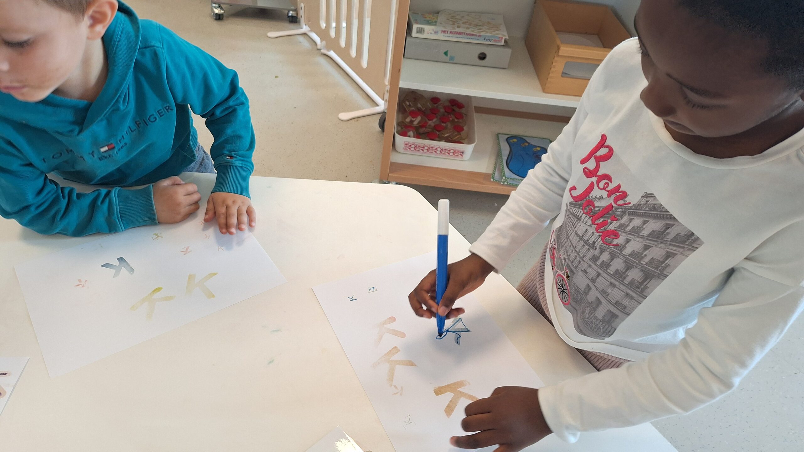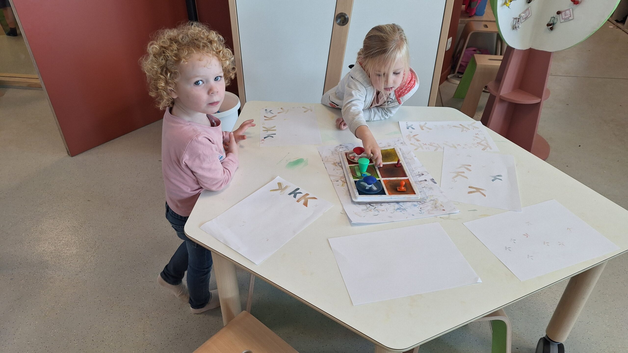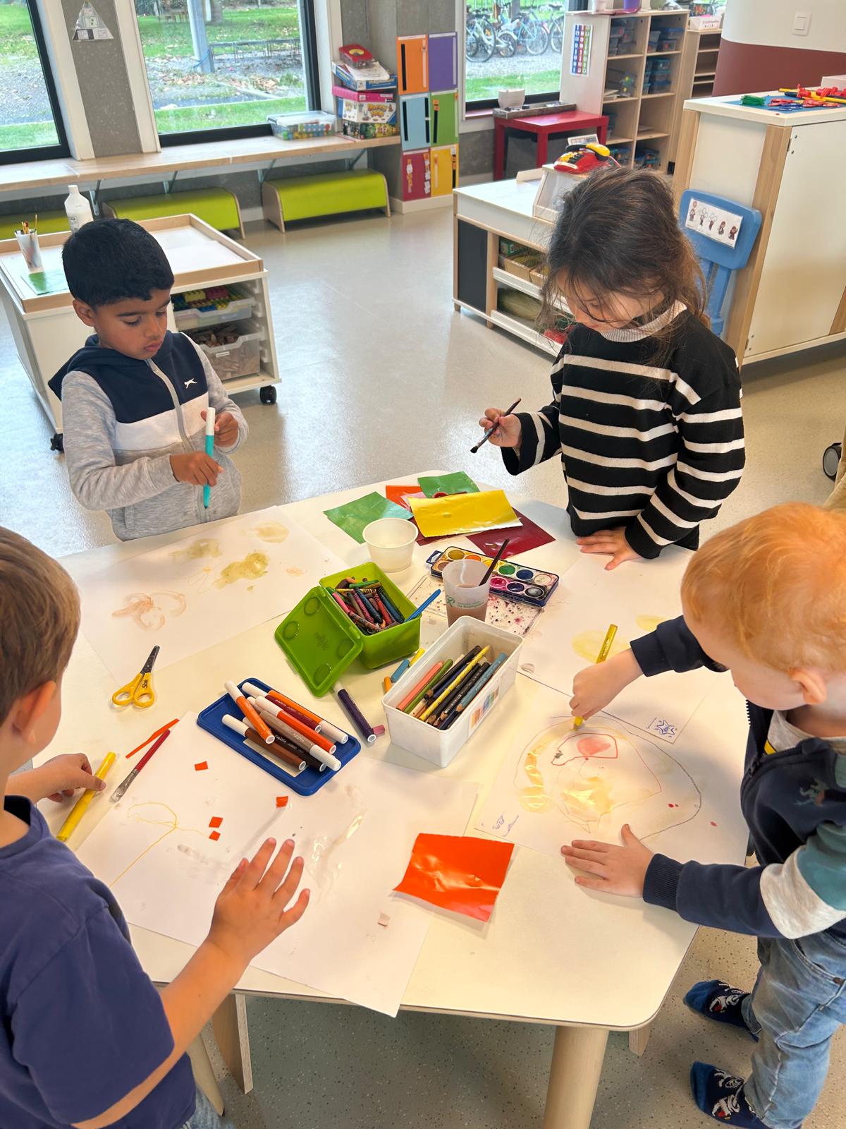 Na al dat ontdekken gingen de kleuters zelf aan de slag. Ze schilderden, stempelden, drupten en experimenteerden erop los. Het resultaat is een prachtige verzameling kunstwerken, elk uniek op zijn eigen manier.