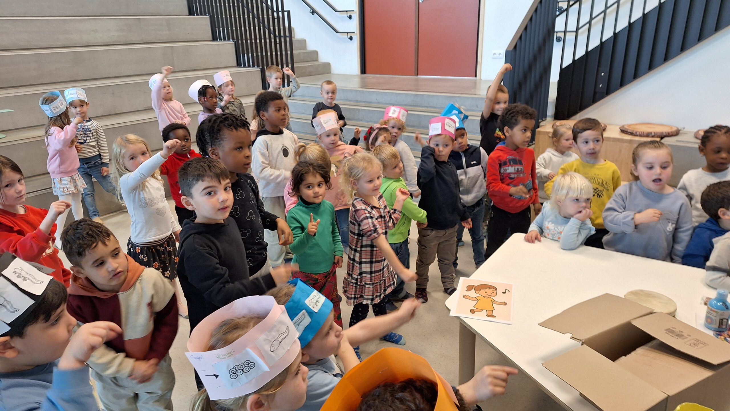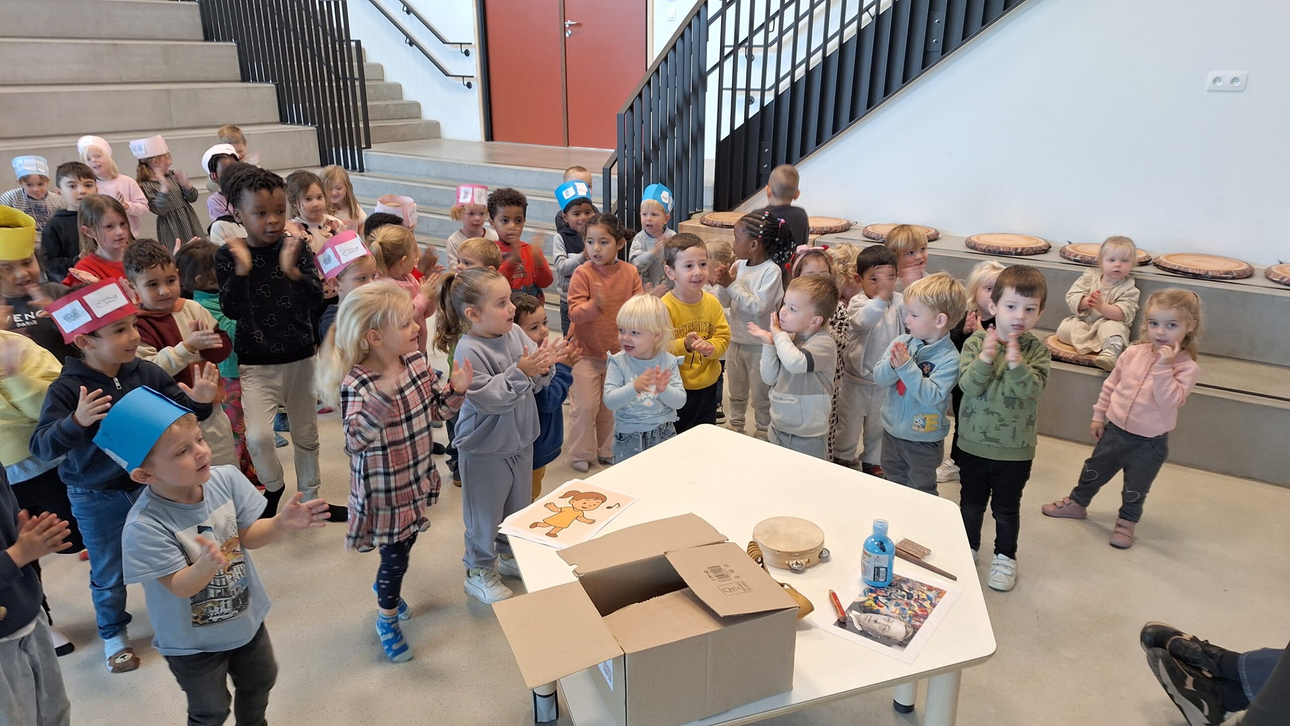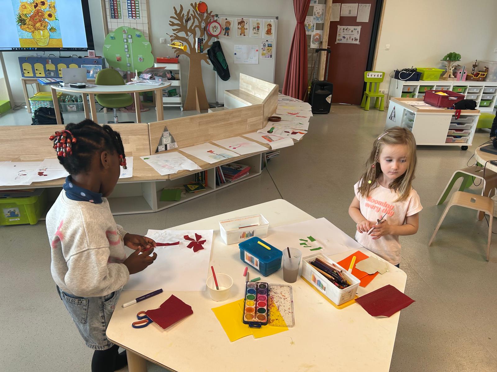 Volgende week kunnen de ouders de kunstwerken komen bewonderen op het forum. De kleuters kijken er alvast trots naar uit om hun kunst te laten zien!