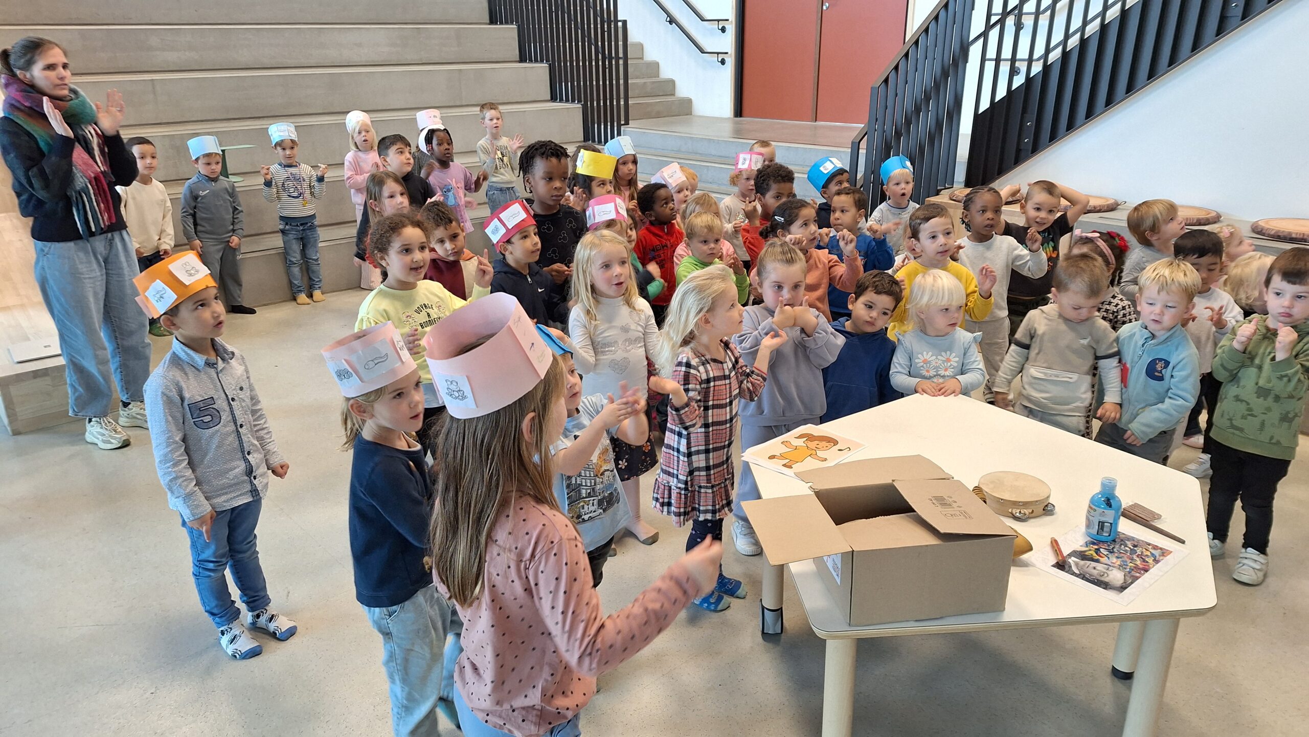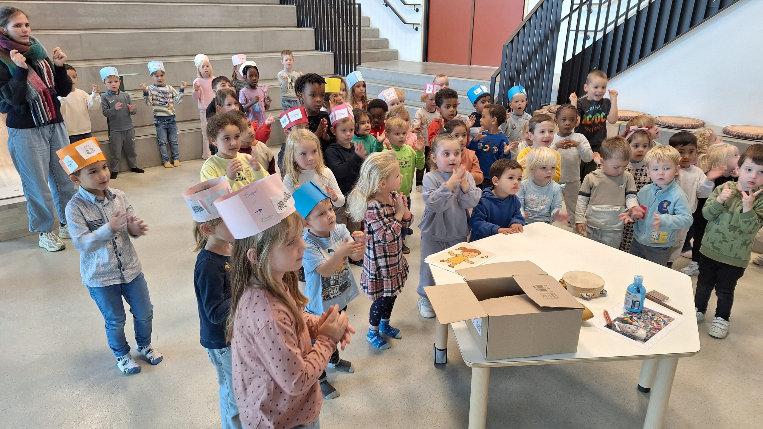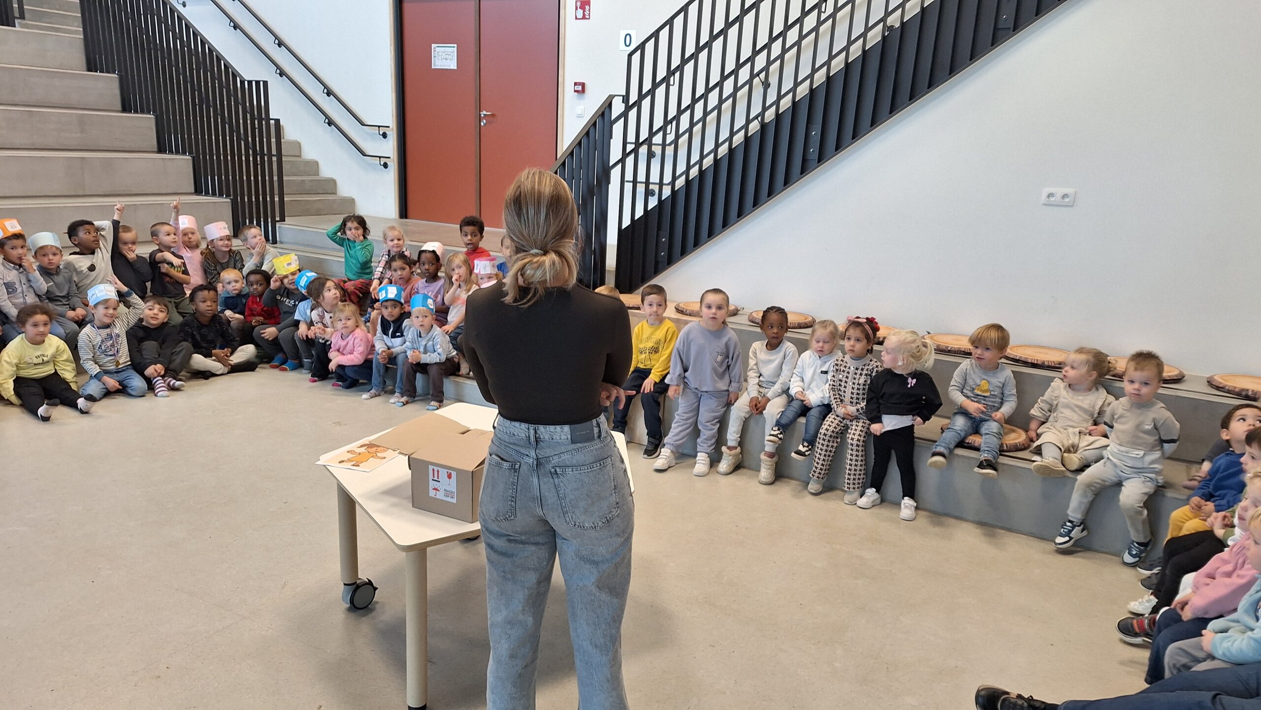 Volgende week kunnen de ouders de kunstwerken komen bewonderen op het forum. De kleuters kijken er alvast trots naar uit om hun kunst te laten zien!