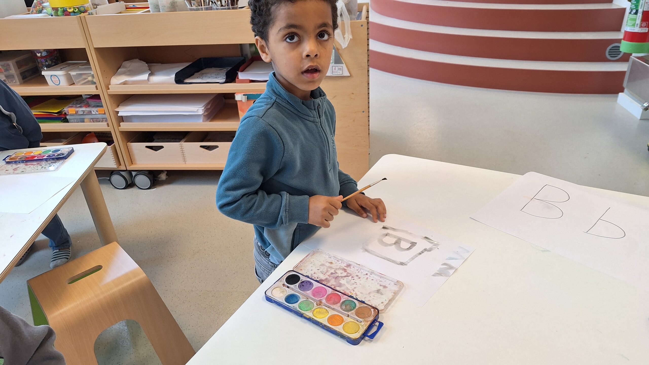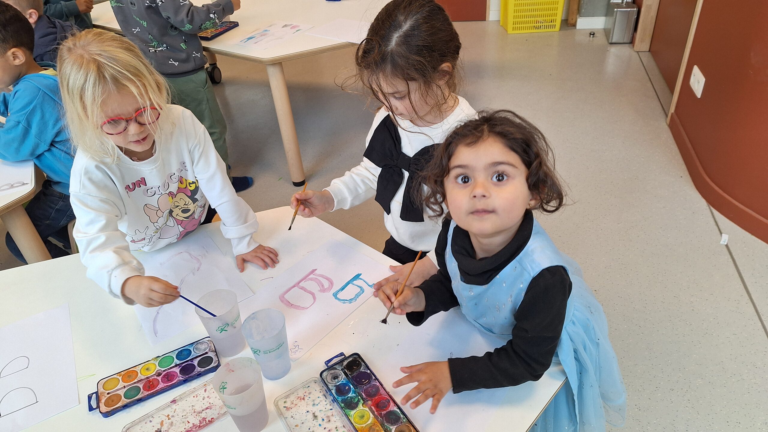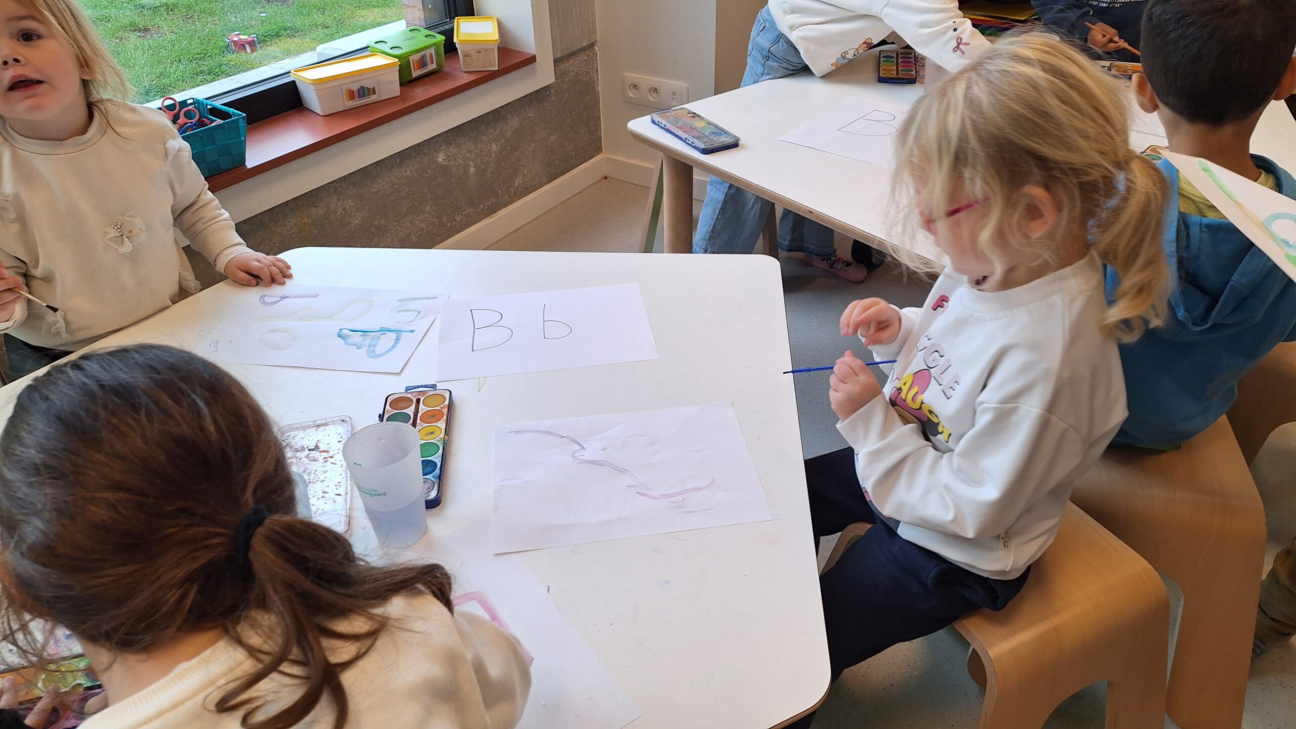Donderdag was het terug letterdag. Deze week stond de letter B centraal — van boom, blad, bos en natuurlijk buiten spelen! De kleuters zochten naar de letter B, oefenden het geluid en speelden spelletjes waarbij ze de letter moesten herkennen.
