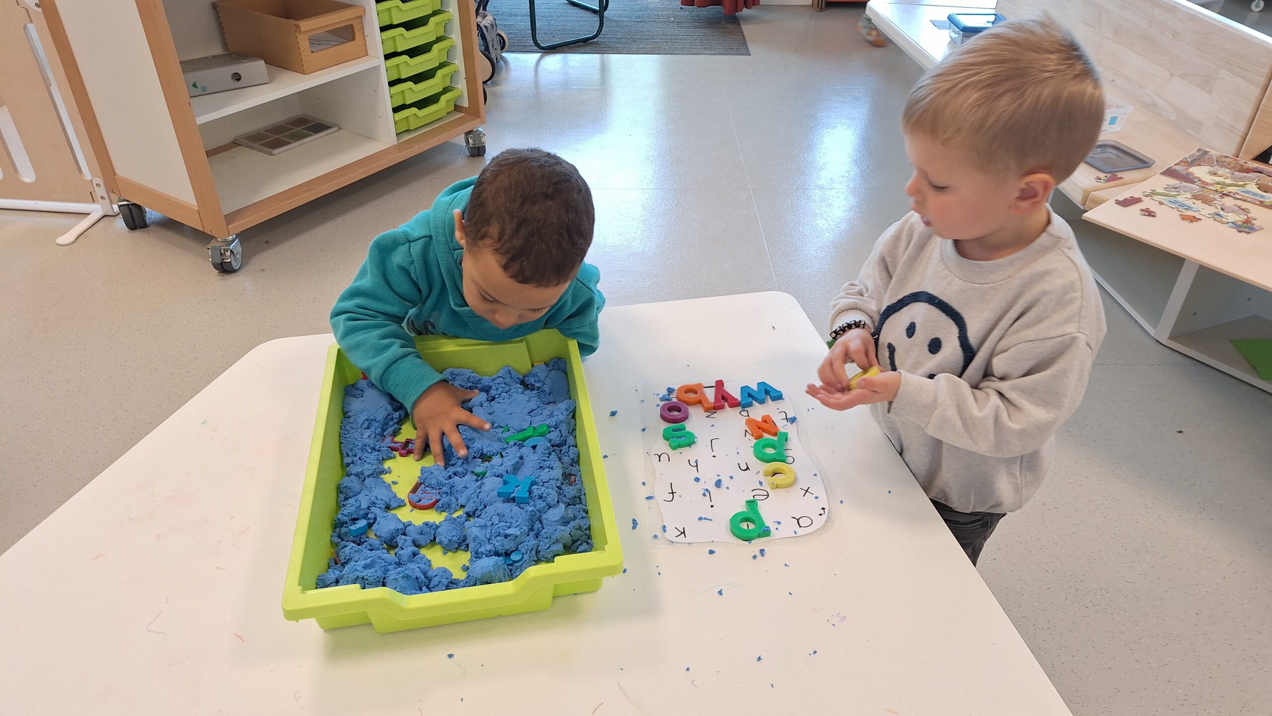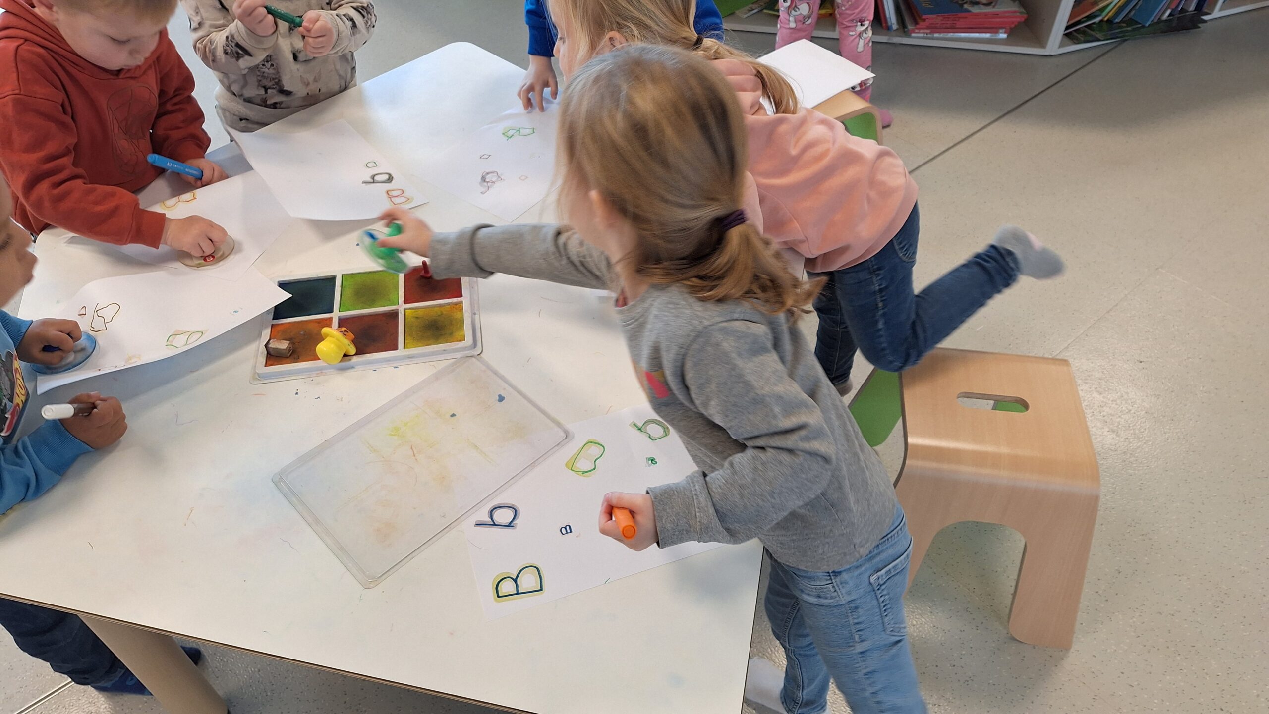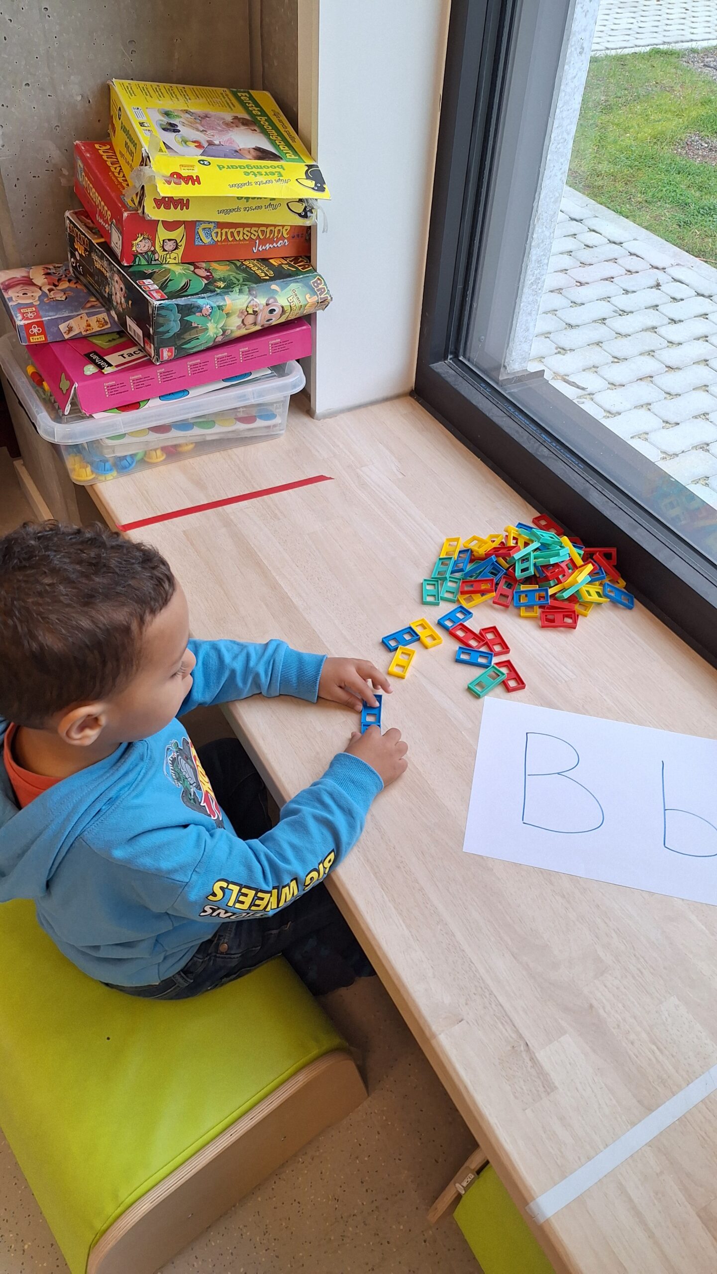 Donderdag was het terug letterdag. Deze week stond de letter B centraal — van boom, blad, bos en natuurlijk buiten spelen! De kleuters zochten naar de letter B, oefenden het geluid en speelden spelletjes waarbij ze de letter moesten herkennen.