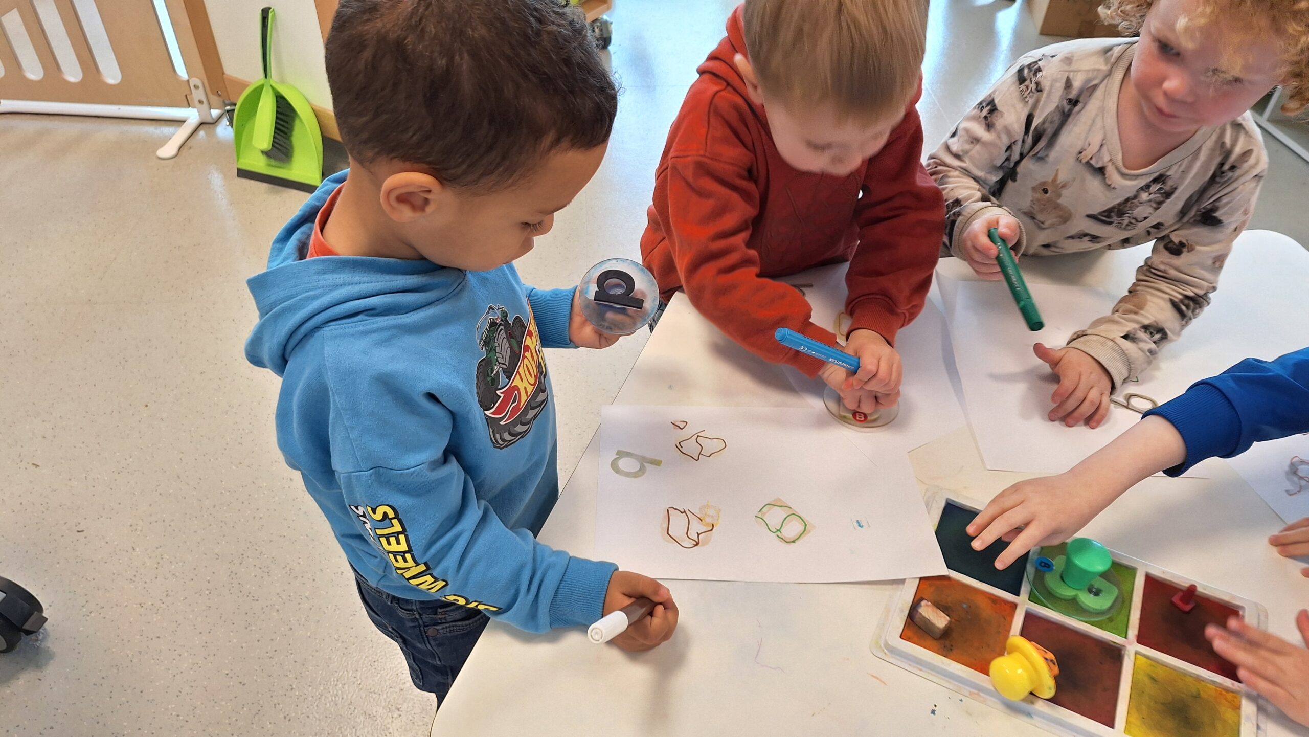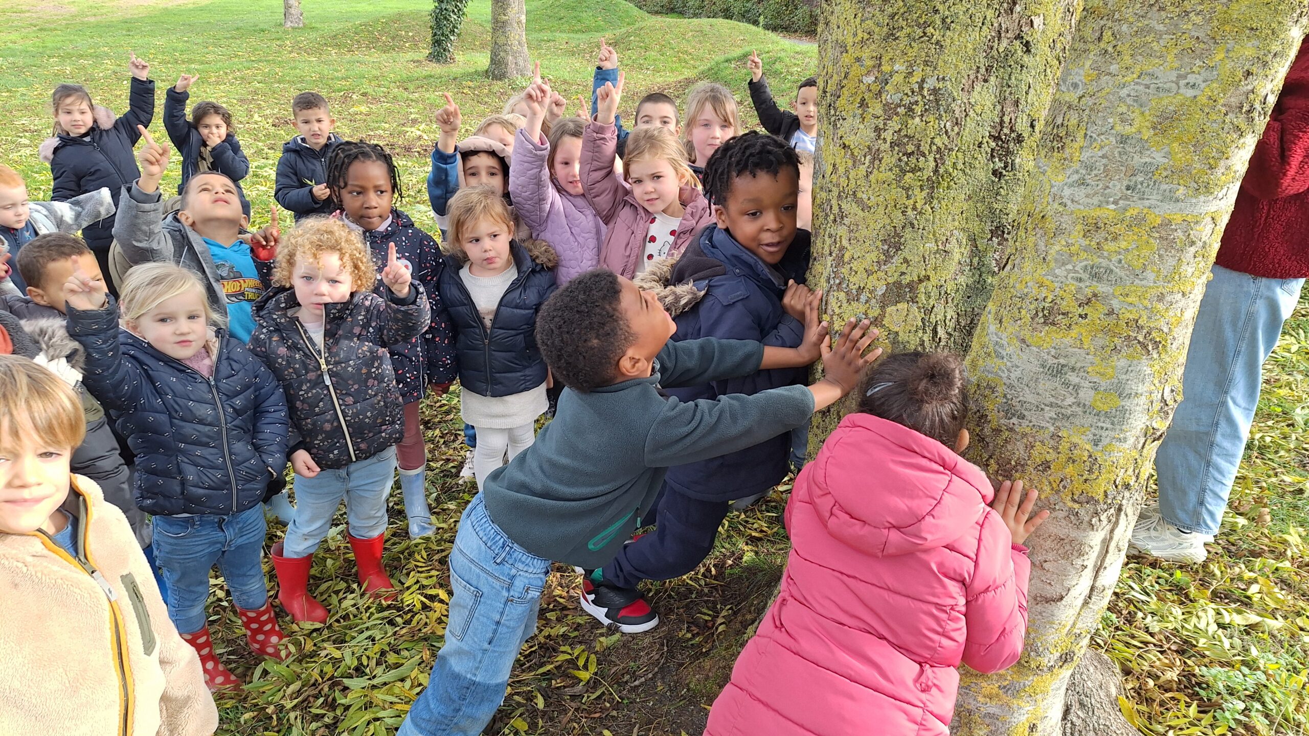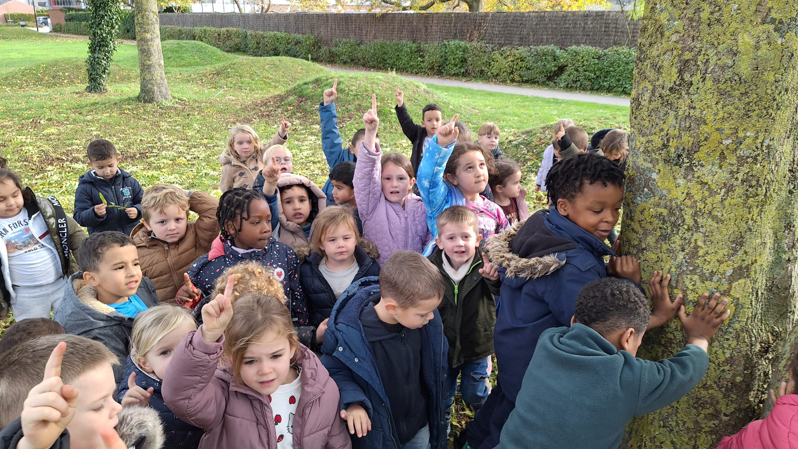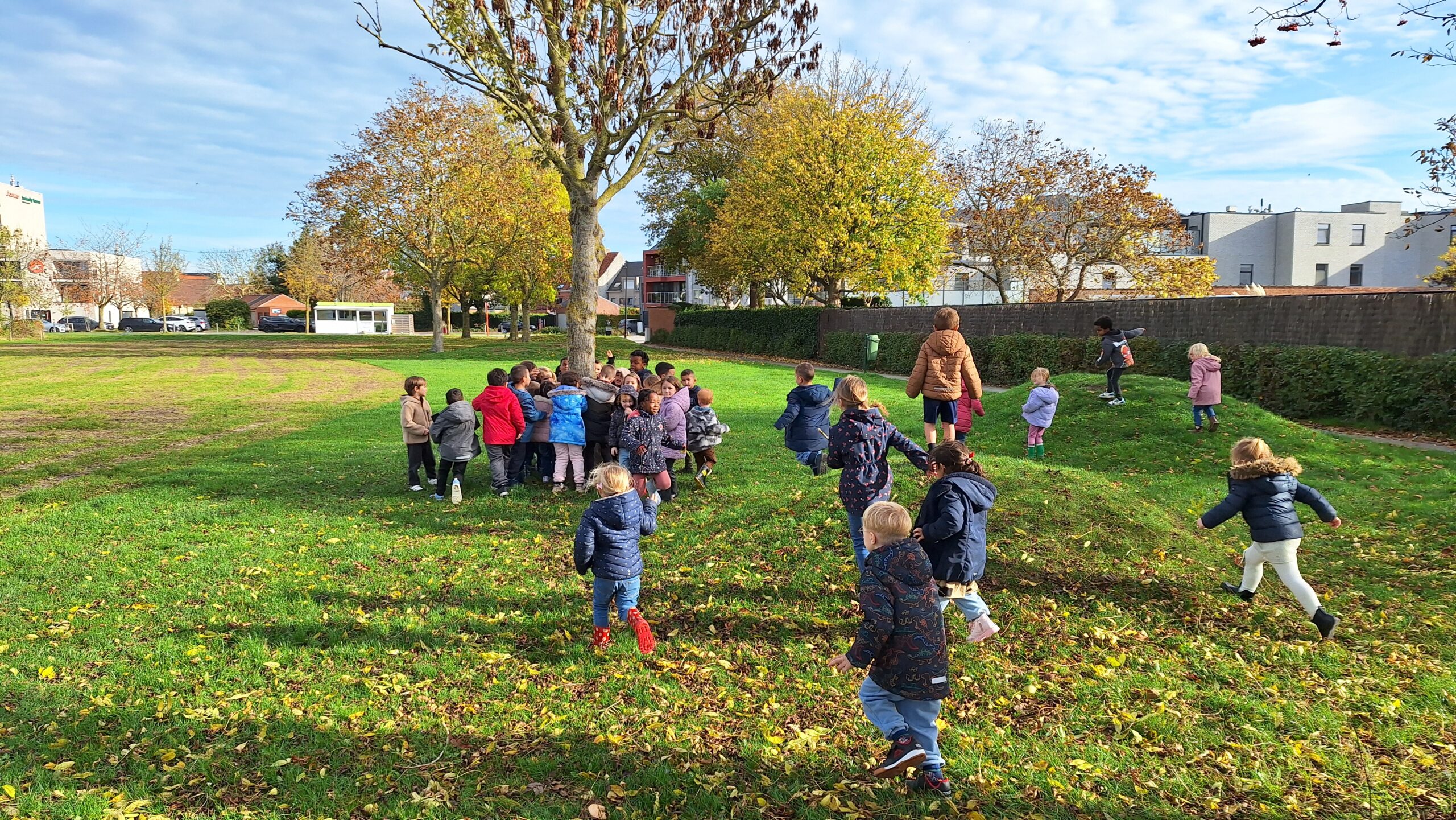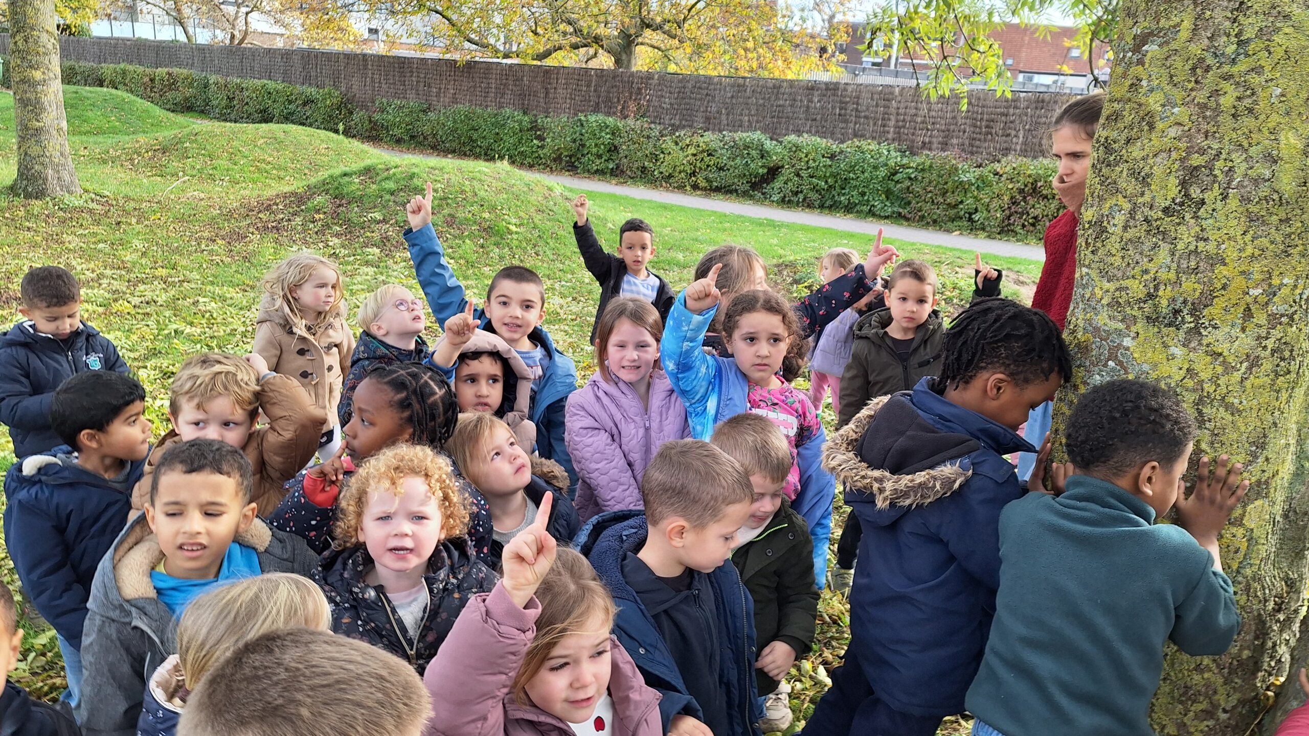 Op dinsdag trokken we naar buiten om bomen van dichtbij te bekijken. We zagen hoe de bladeren van kleur veranderen, hoe sommige blaadjes nog vasthangen en andere al op de grond liggen. We spraken over stam, takken, bladeren en wortels. Een echte ontdekkingstocht in onze eigen omgeving!