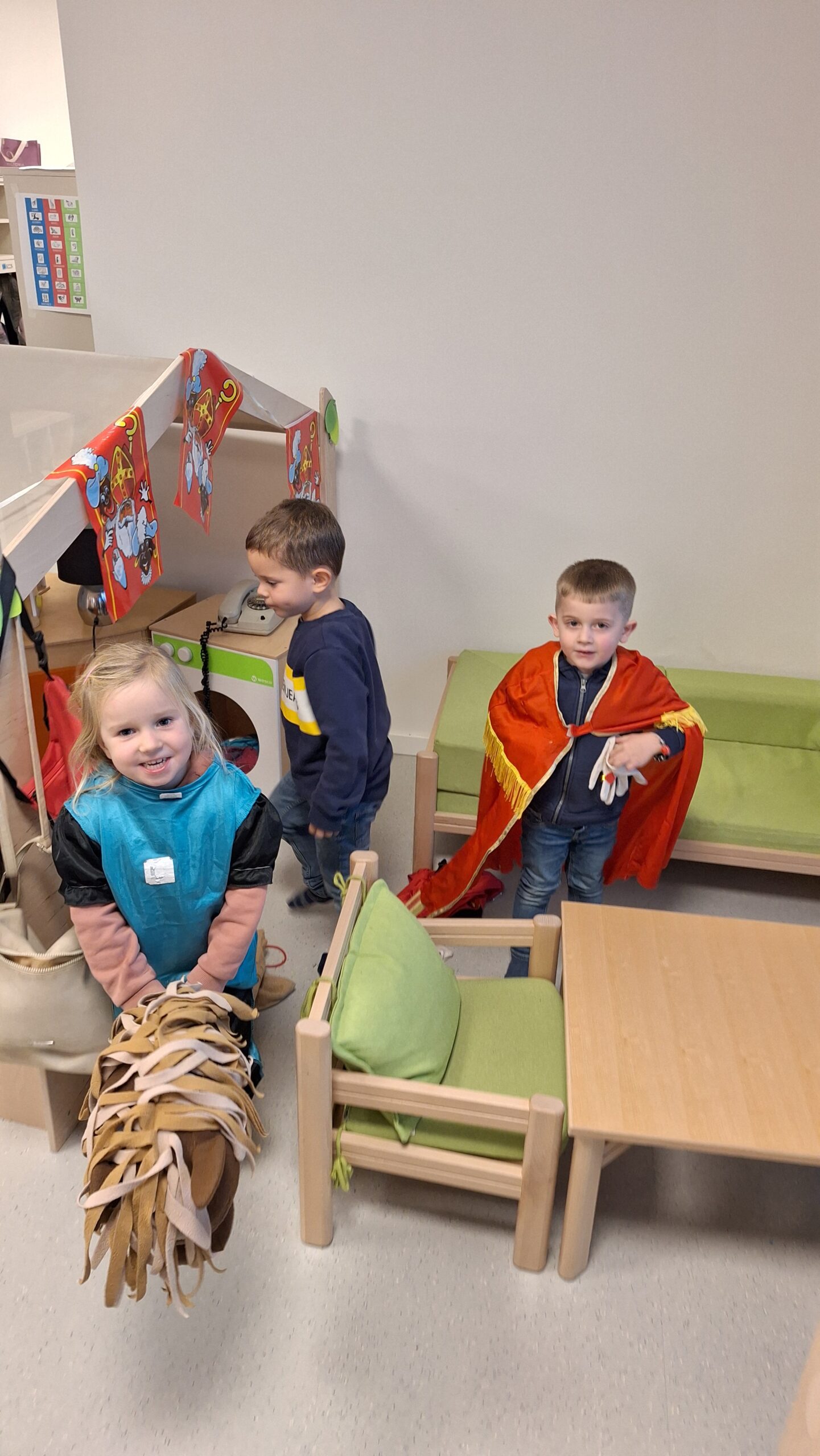 Deze week leerden we ook over de lichaamsdelen. Welke lichaamsdelen gebruiken we om te klimmen? En hoe loopt de Sint eigenlijk over de daken? De kinderen ontdekten heel wat nieuwe woorden en begrippen op een speelse manier.