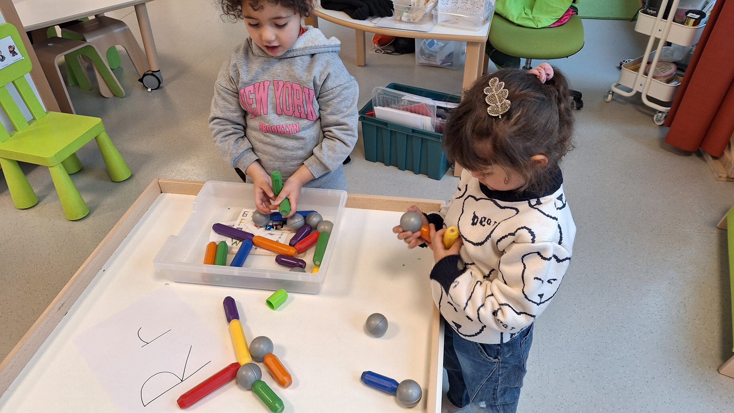 Wiskunde in de ruimte! We oefenden deze week het aanvullen tot 6. De kleuters mochten extra planeten, astronauten of sterren bijtekenen tot we er samen 6 hadden. Zo leerden we spelenderwijs tellen en aanvullen.